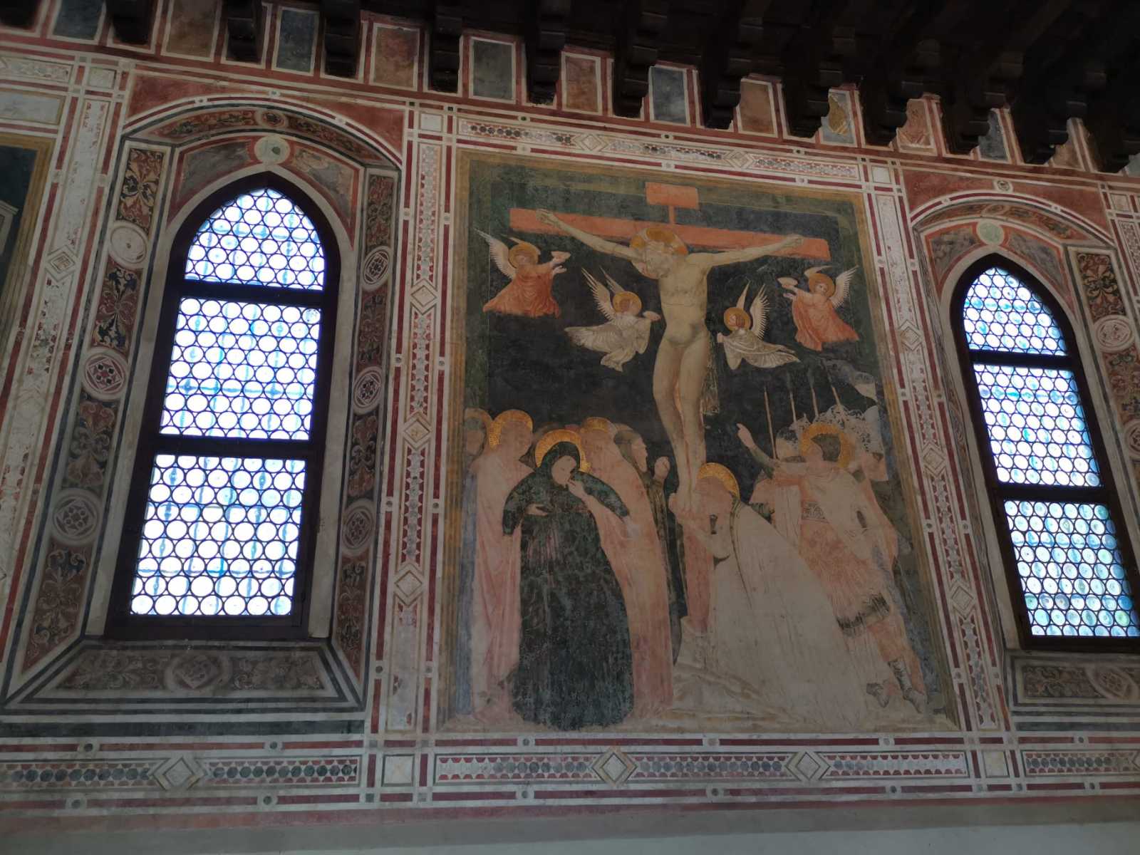 I chiostri non hanno retto all’uso o meglio abuso delle strutture, ma si sono conservati il Refettorio e la Sala Capitolare con interessanti affreschi.
