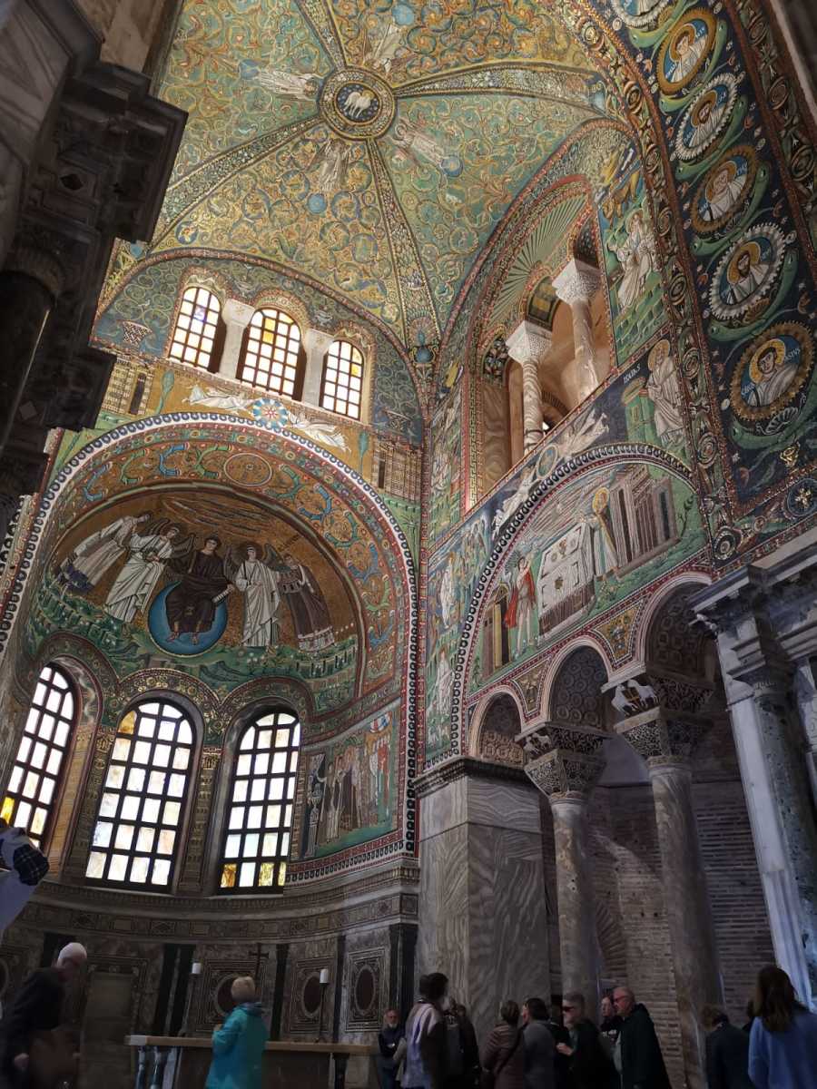 Sabato 1° aprile 2023 Ravenna ci ha accolto con un cielo turchese che ha dato il la ad una giornata mirabile. Dalla sorprendente ricchezza di Sant’Apollinare in Classe alla imponente semplicità del Mausoleo di Teodorico, dalle suggestive processioni musive di Sant’Apollinare Nuovo alla sorprendente volta del Battistero neoniano, dal Museo con la cattedra vescovile di Massimiano alla chiesa di San Francesco con la cripta allagata, dai preziosissimi mosaici del Mausoleo di Galla Placidia alla complessa chiesa di San Vitale è stato un susseguirsi di emozioni, sorprese, ammirazione, compiacimento e apprezzamento per ciò che Ravenna ha conservato del suo prestigioso passato.